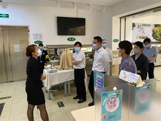 圖為公司直屬紀委深入聚緣公司,現場監督檢查員工食堂防疫措施落實情況