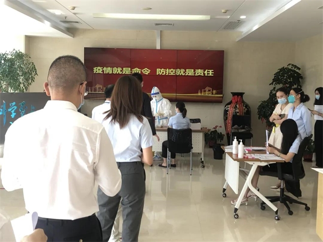 圖為中化福建石油紀檢干部深入一線監督員工開展核酸檢測